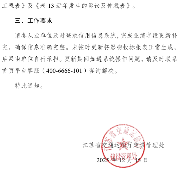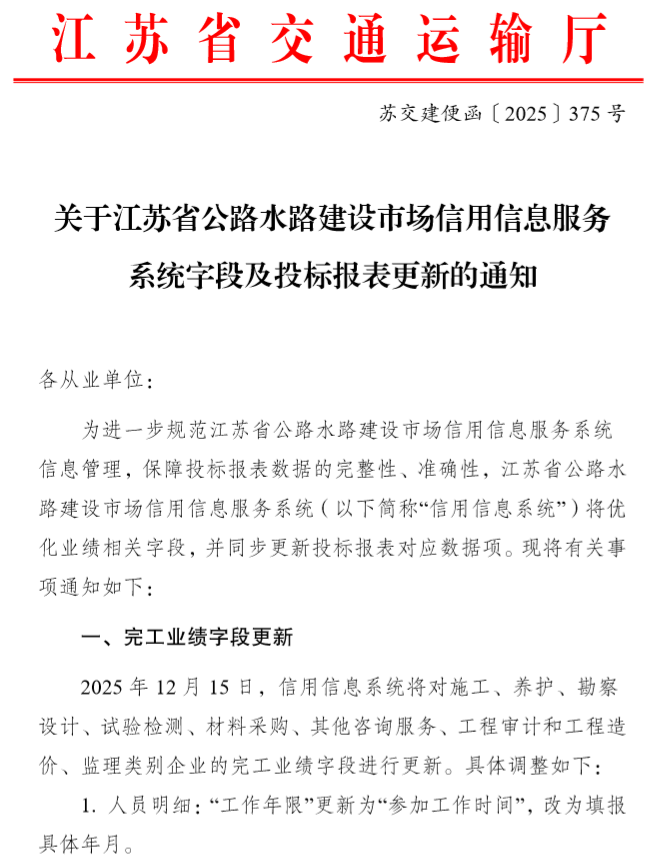 关于江苏省公路水路建设市场信用信息服务系统字段及投标报表更新的通知